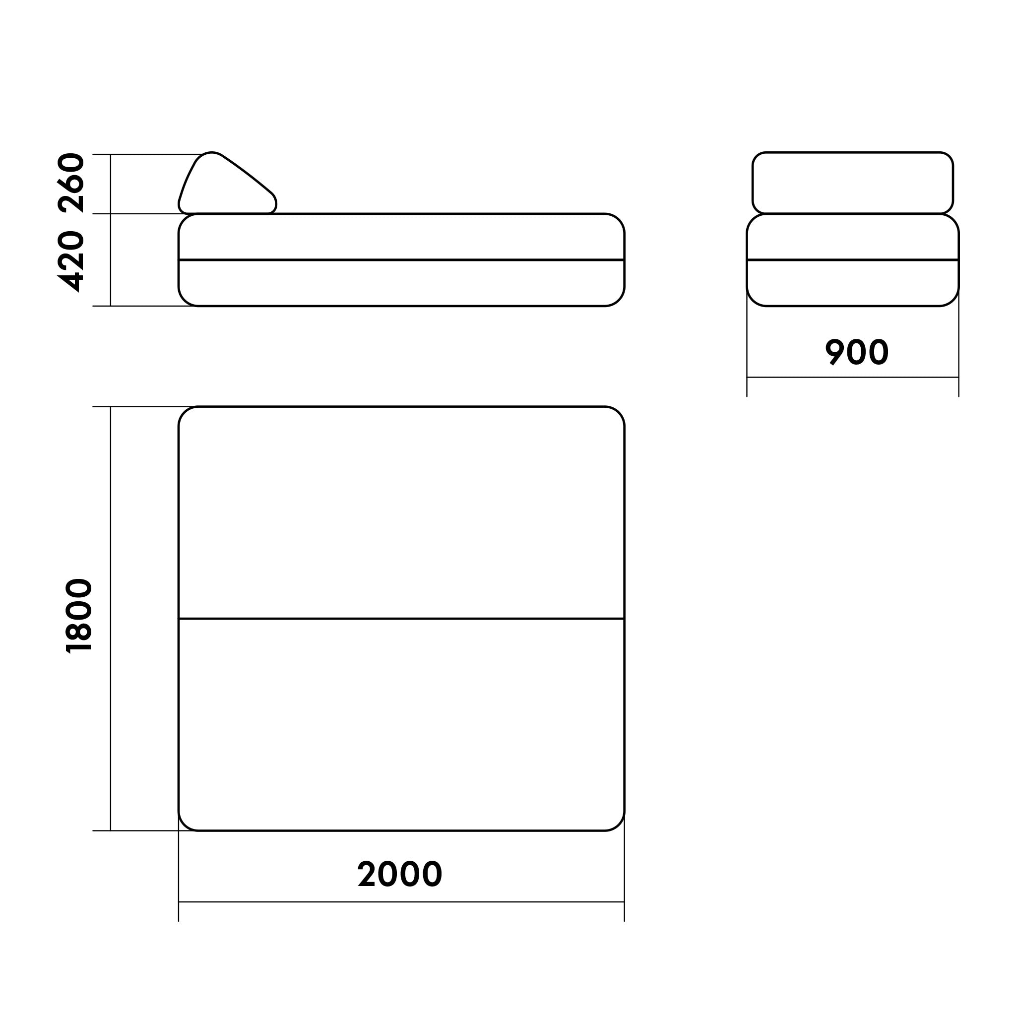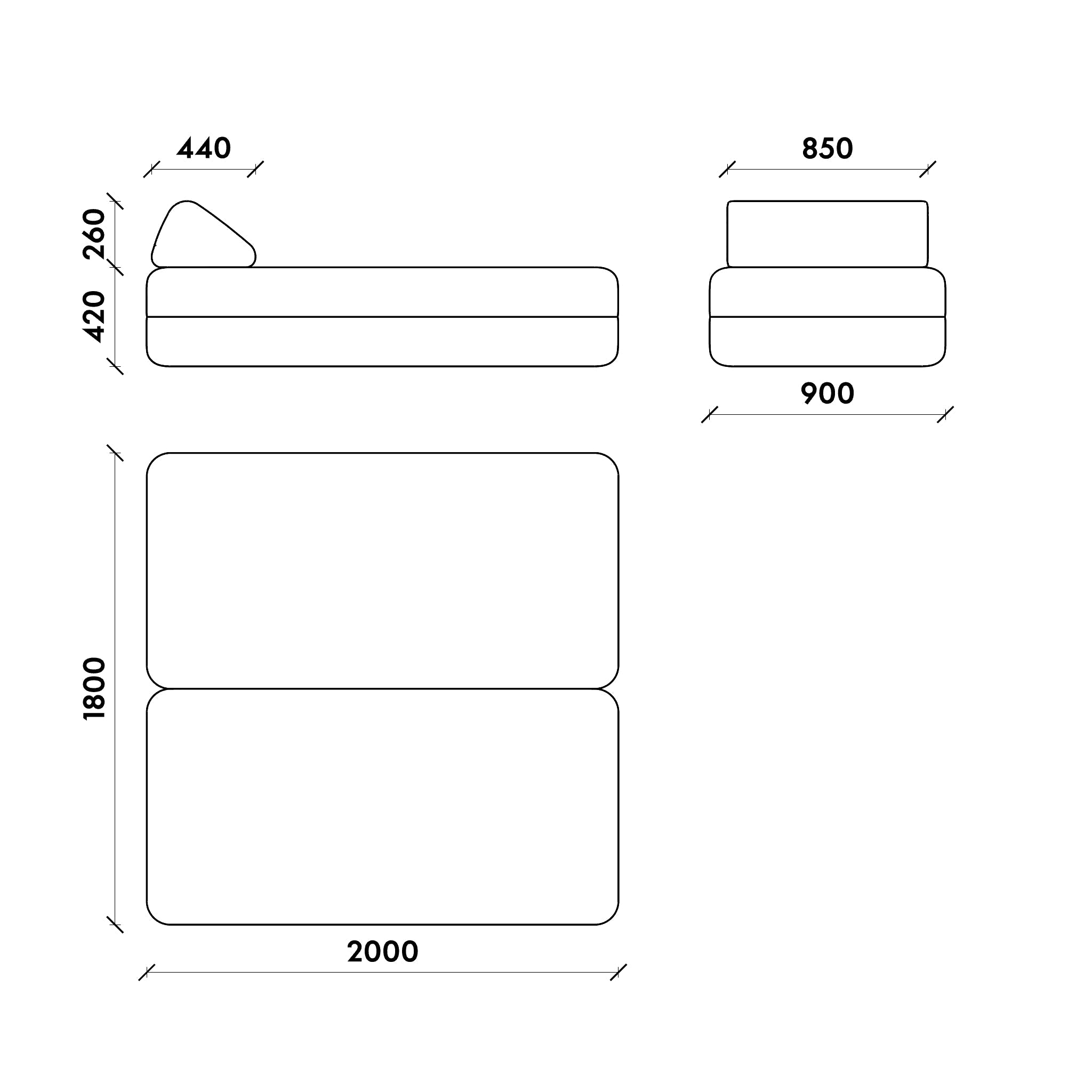Wer die Funktion einer Liege schätzt, kann auf den Kauf des Kingsize Schlafsofas verzichten und sich stattdessen für diese Variante entscheiden. Die Liege bietet eine Liegefläche von 180x200 cm, als Sofa hat sie die Maße 200x90 cm. Die Sitzhöhe beträgt 42 cm. Die 100 % recycelten Friends & Furniture ECO-Stoffe sind bei 30 °C maschinenwaschbar.