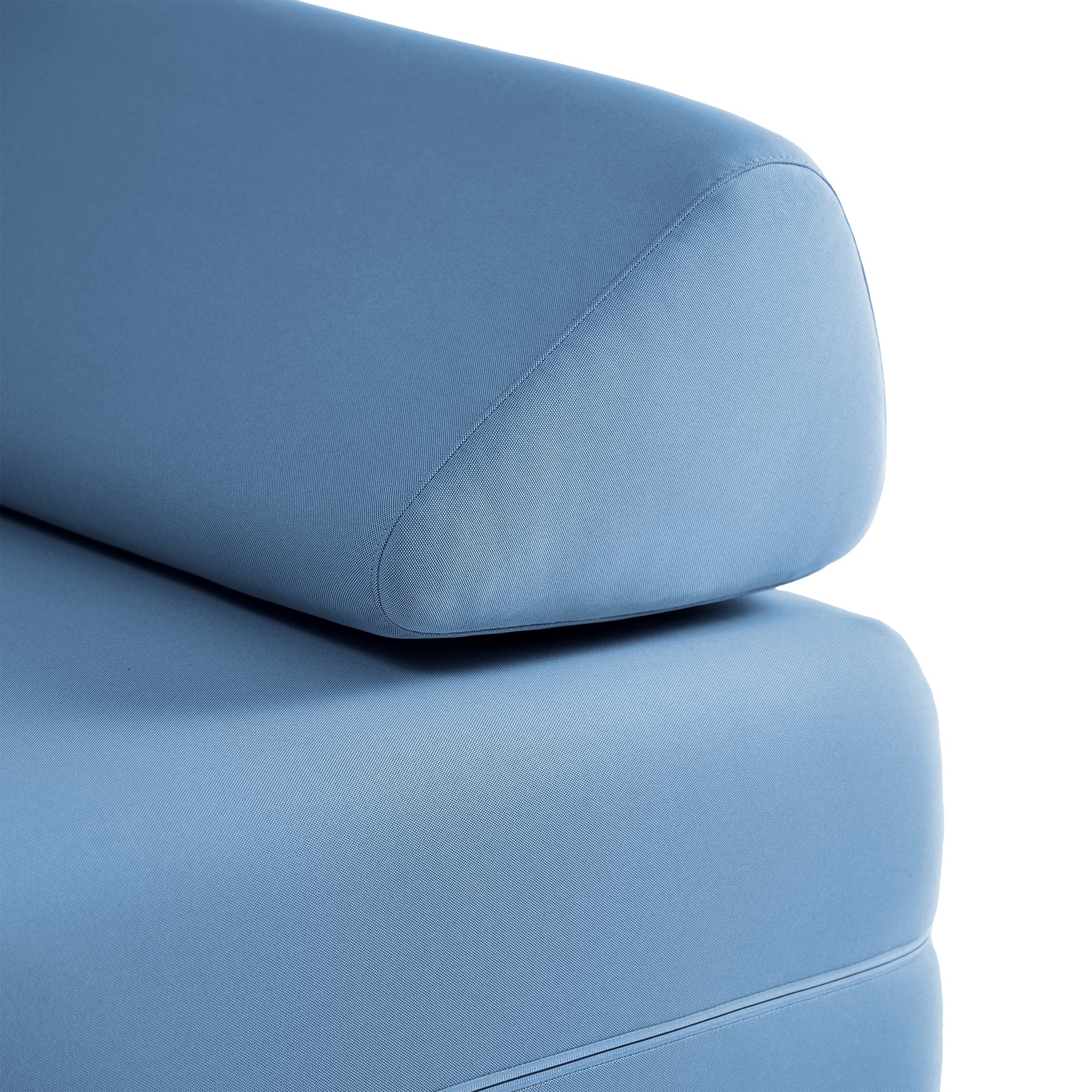 Die Liege ist mit einer dreieckigen Rückenlehne ausgestattet, die den Nacken perfekt stützt und für Entspannung sorgt. Tipp: Diese Rückenlehne kann auch unter die Beine geschoben werden, um den Rücken besser zu stützen (siehe Bild).