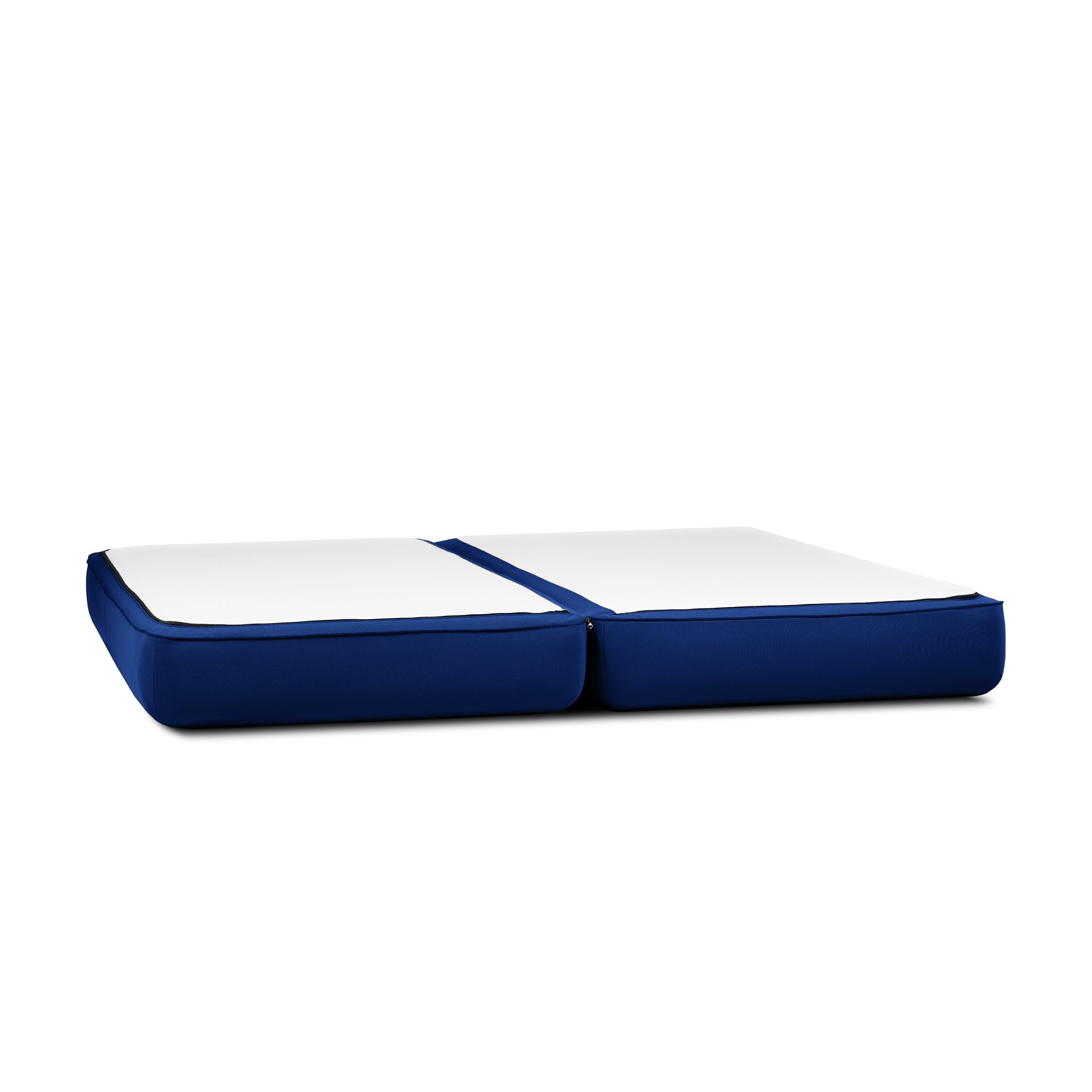 Als Bett ist der Friends & Furniture Schlafsessel mit einer zweischichtigen Matratze ausgestattet, die sich aus einer 15 cm dicken, als „fest“ eingestuften Grundschicht und einer 4 cm dicken Schicht aus Memoryfoam zusammensetzt. Auf diese Weise passt sich die Matratze der Körperform an und sorgt für ein komfortables Schlaferlebnis.