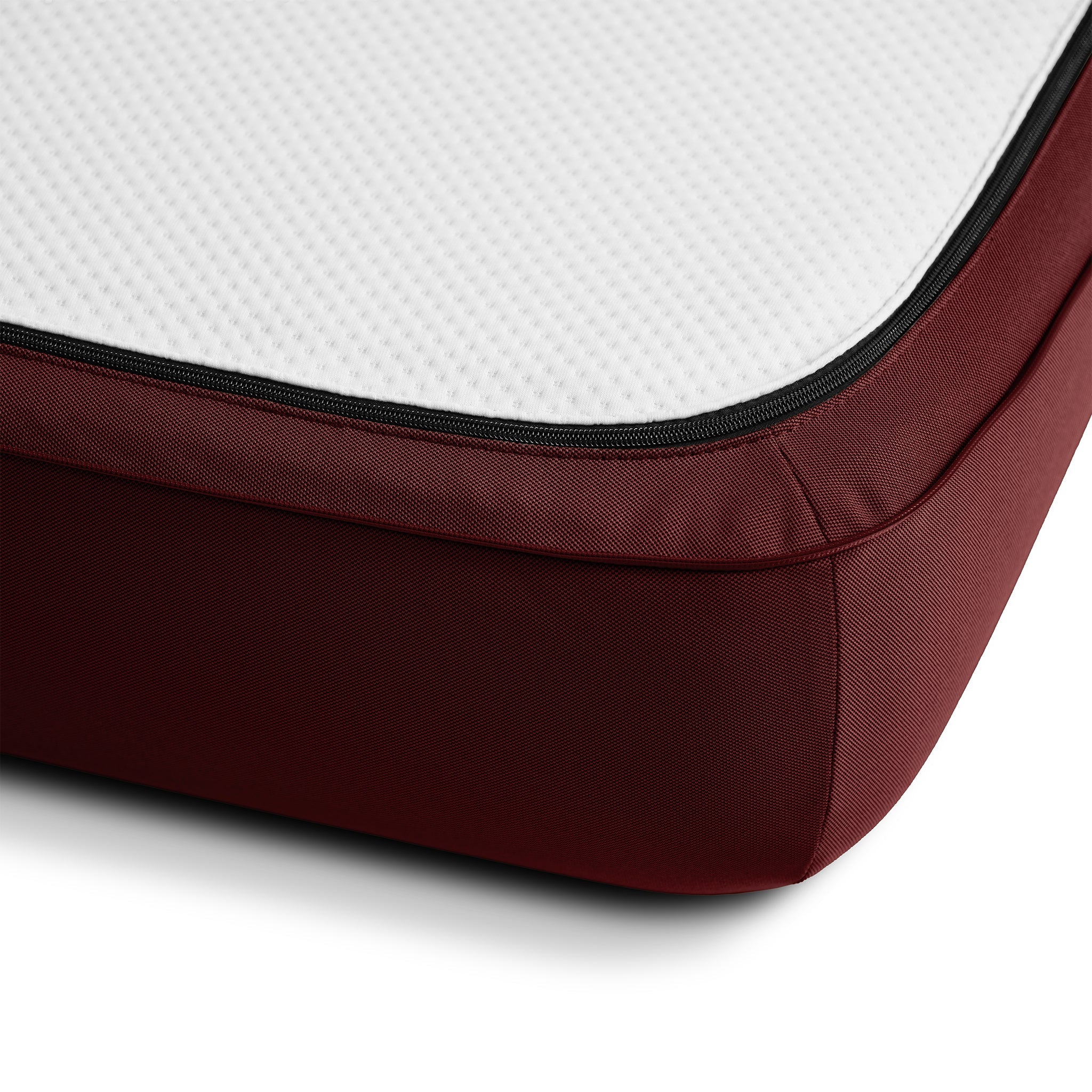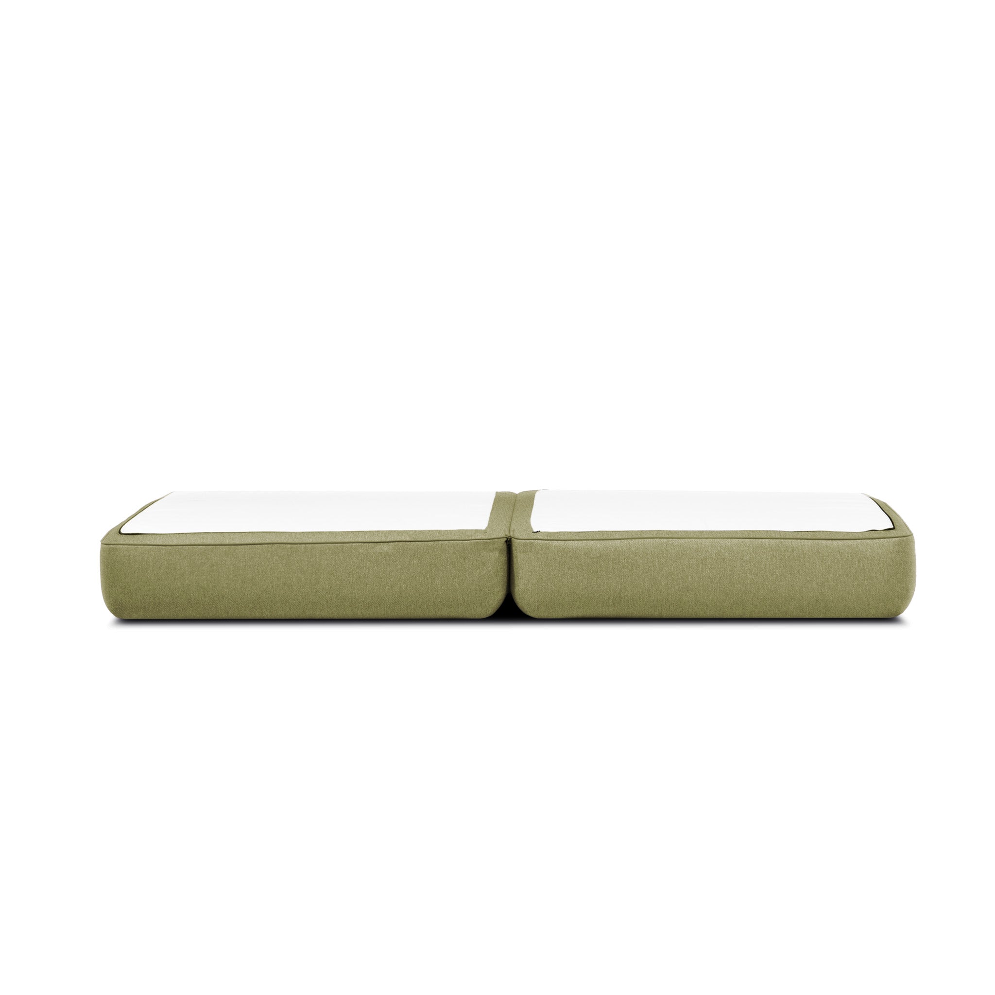 Als Bett ist der Friends & Furniture Schlafsessel mit einer zweischichtigen Matratze ausgestattet, die sich aus einer 15 cm dicken, als „fest“ eingestuften Grundschicht und einer 4 cm dicken Schicht aus Memoryfoam zusammensetzt. Auf diese Weise passt sich die Matratze der Körperform an und sorgt für ein komfortables Schlaferlebnis.