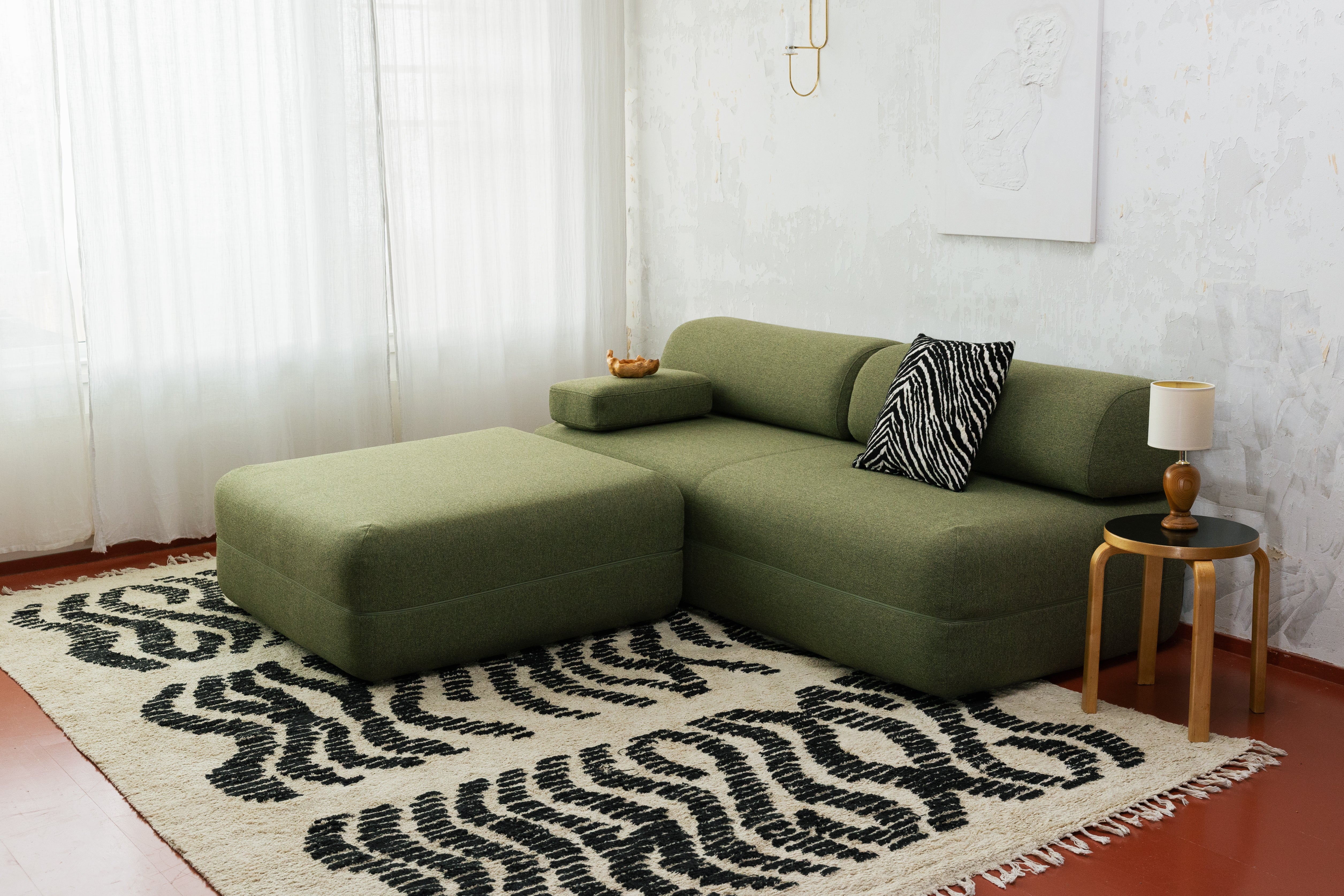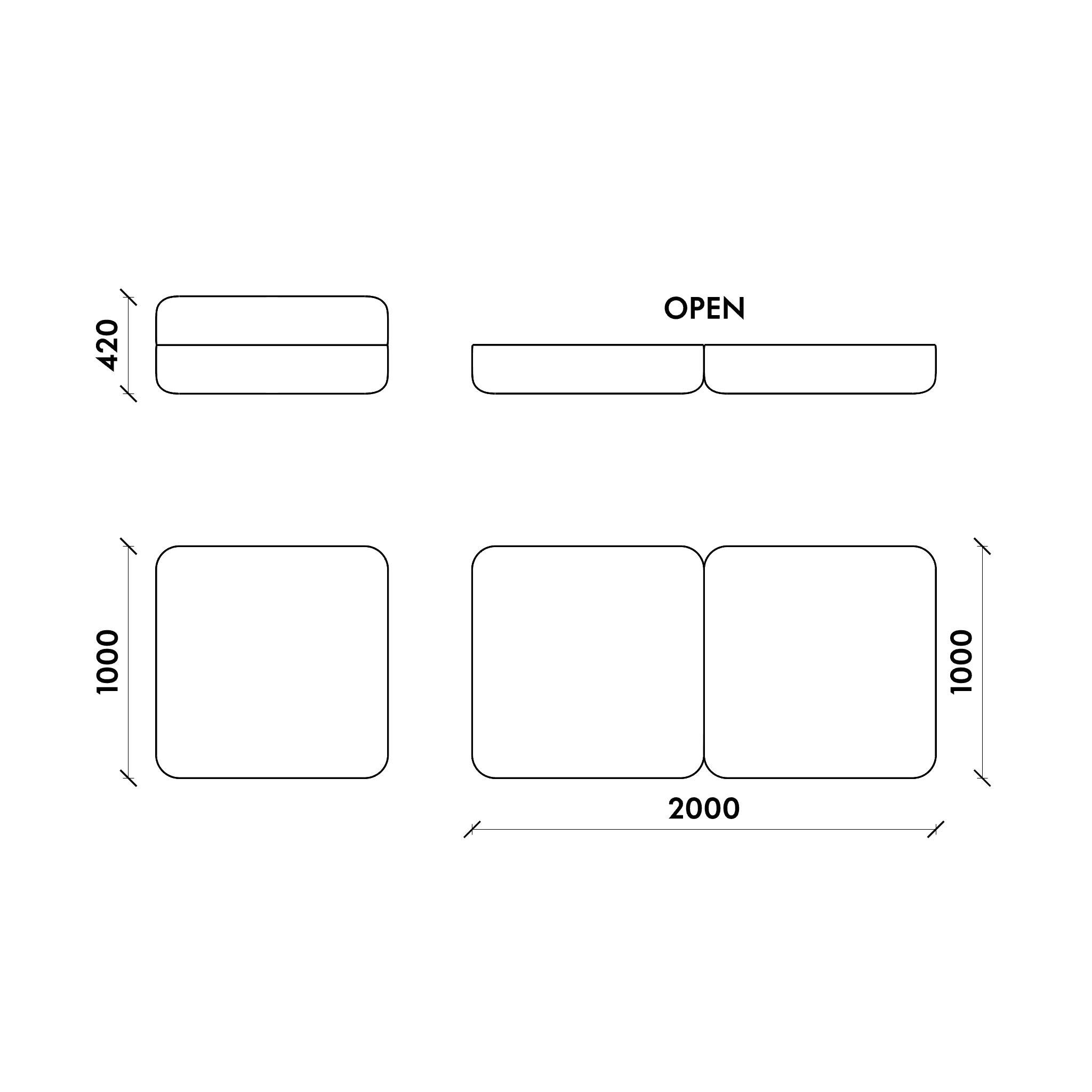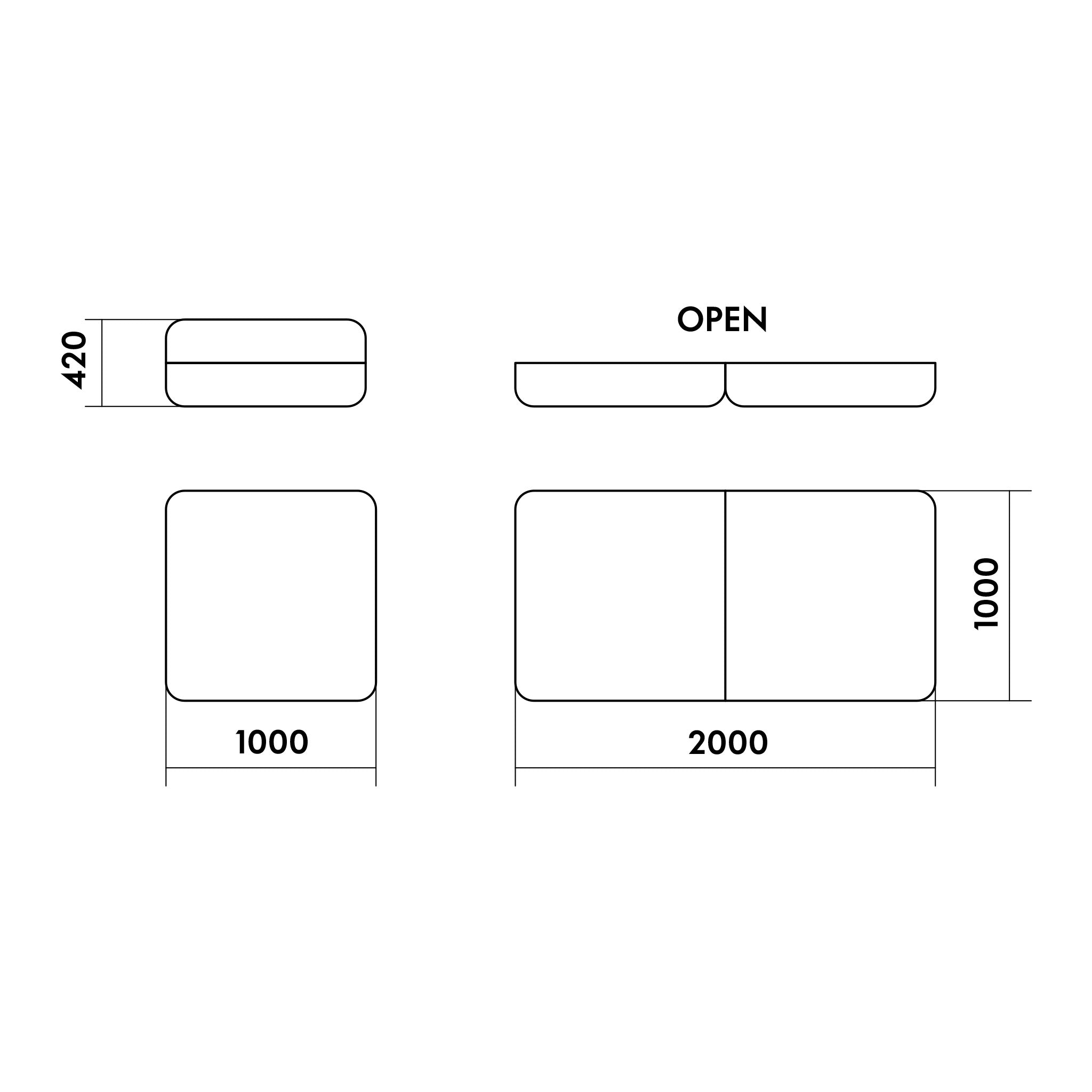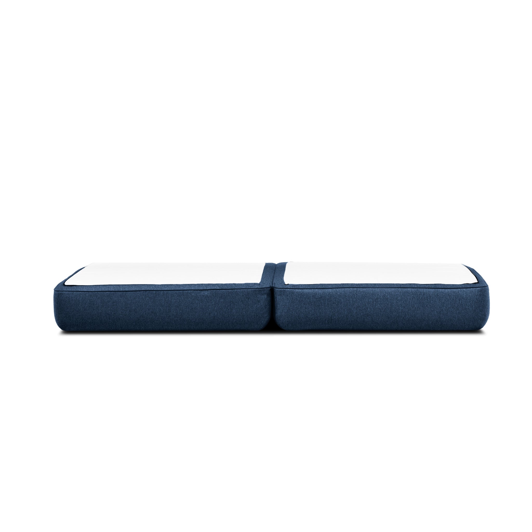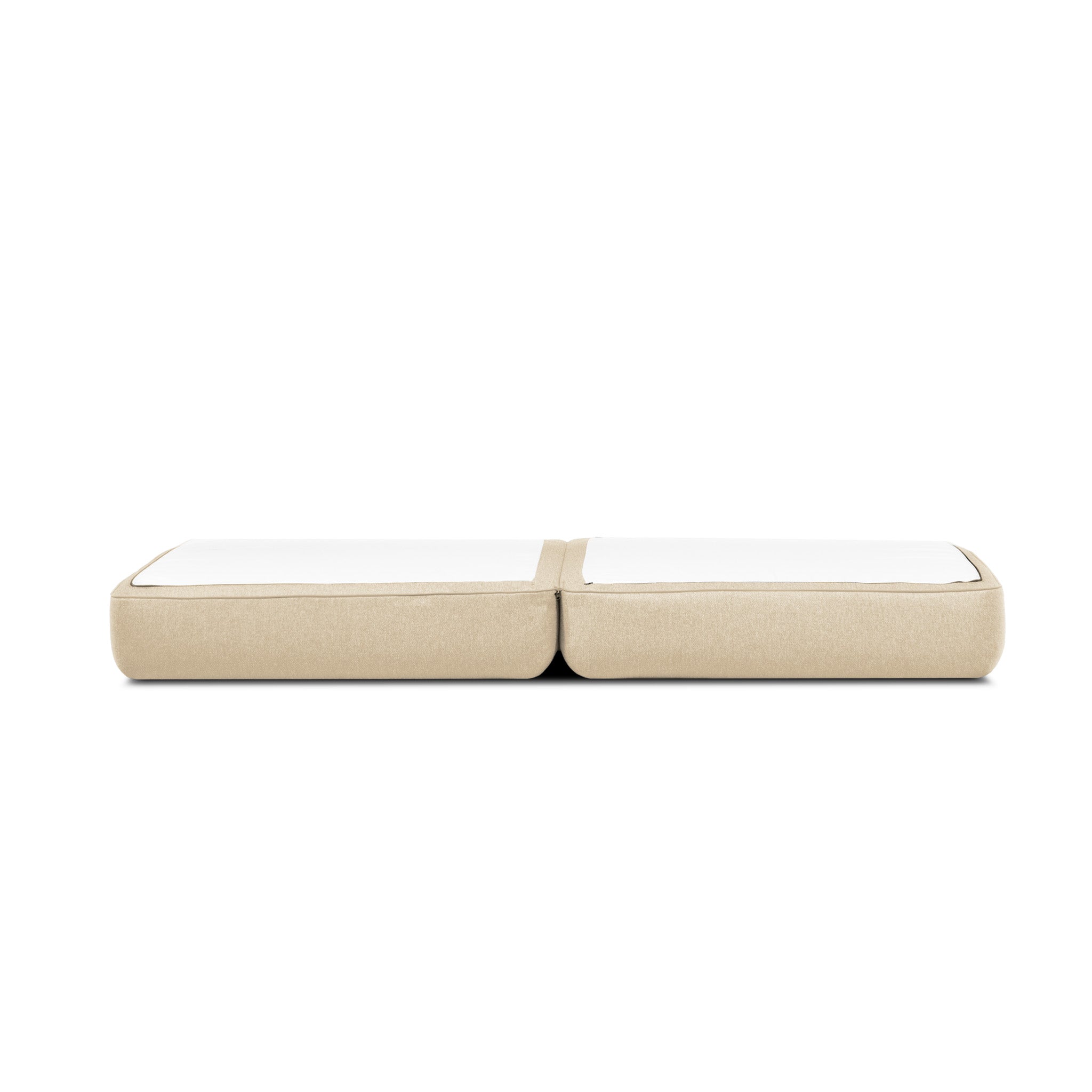 Friends & Furniture präsentiert einen neuen, vielseitigen Hocker, der perfekt zu Ihrem Friends & Furniture Kingsize oder Queensize Bett passt. Er bietet eine flexible, modulare Lösung, die sich im Handumdrehen in ein Einzelbett mit den Maßen 100x200 cm verwandeln lässt. Im Hockerformat misst er 100x100 cm bei einer Höhe von 42 cm. Die 100 % recycelten Friends & Furniture ECO-Stoffe sind bei 30 °C maschinenwaschbar.