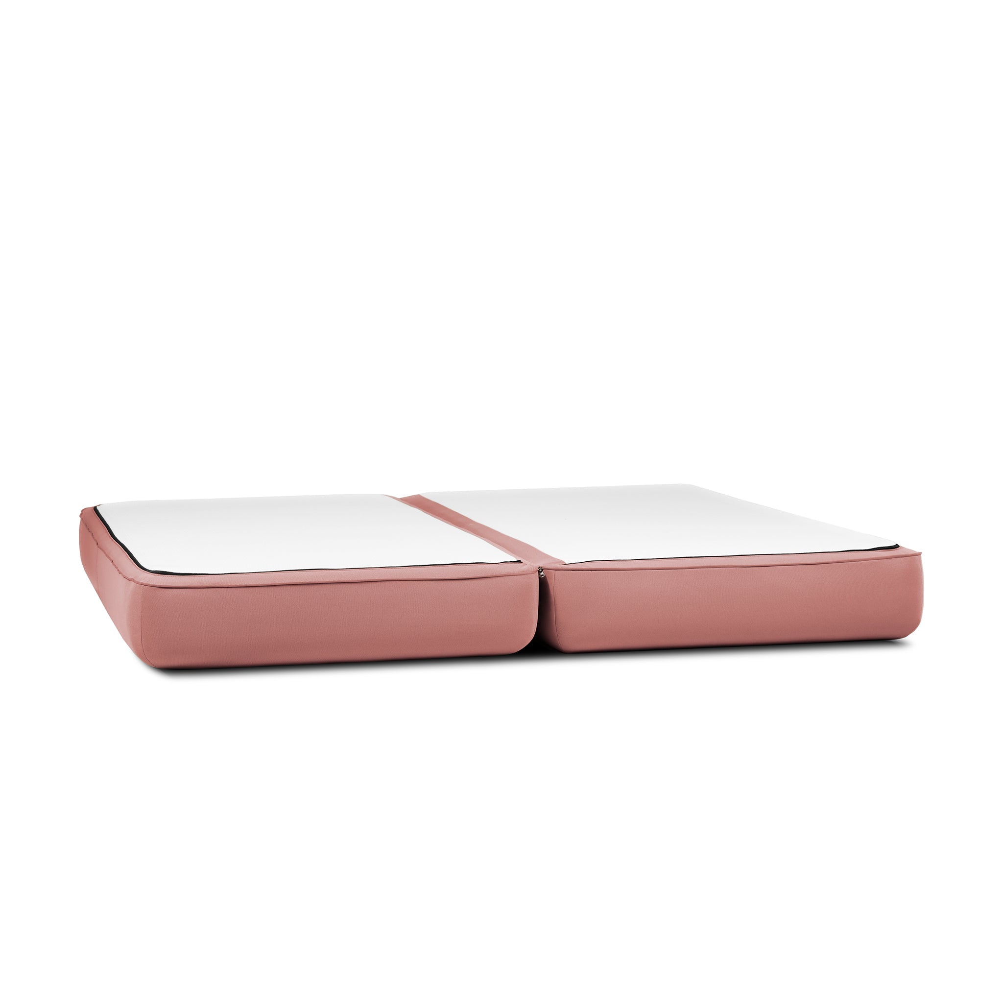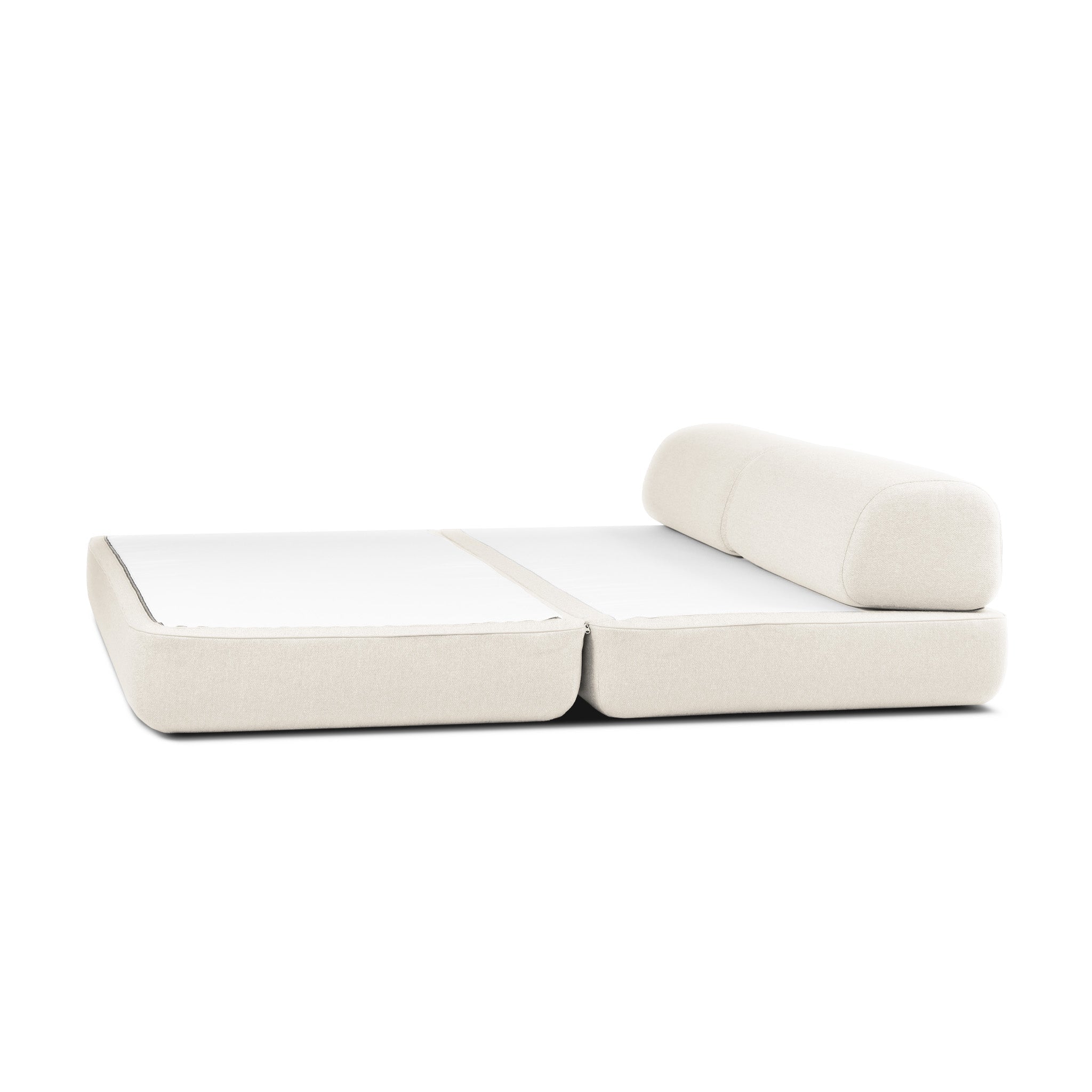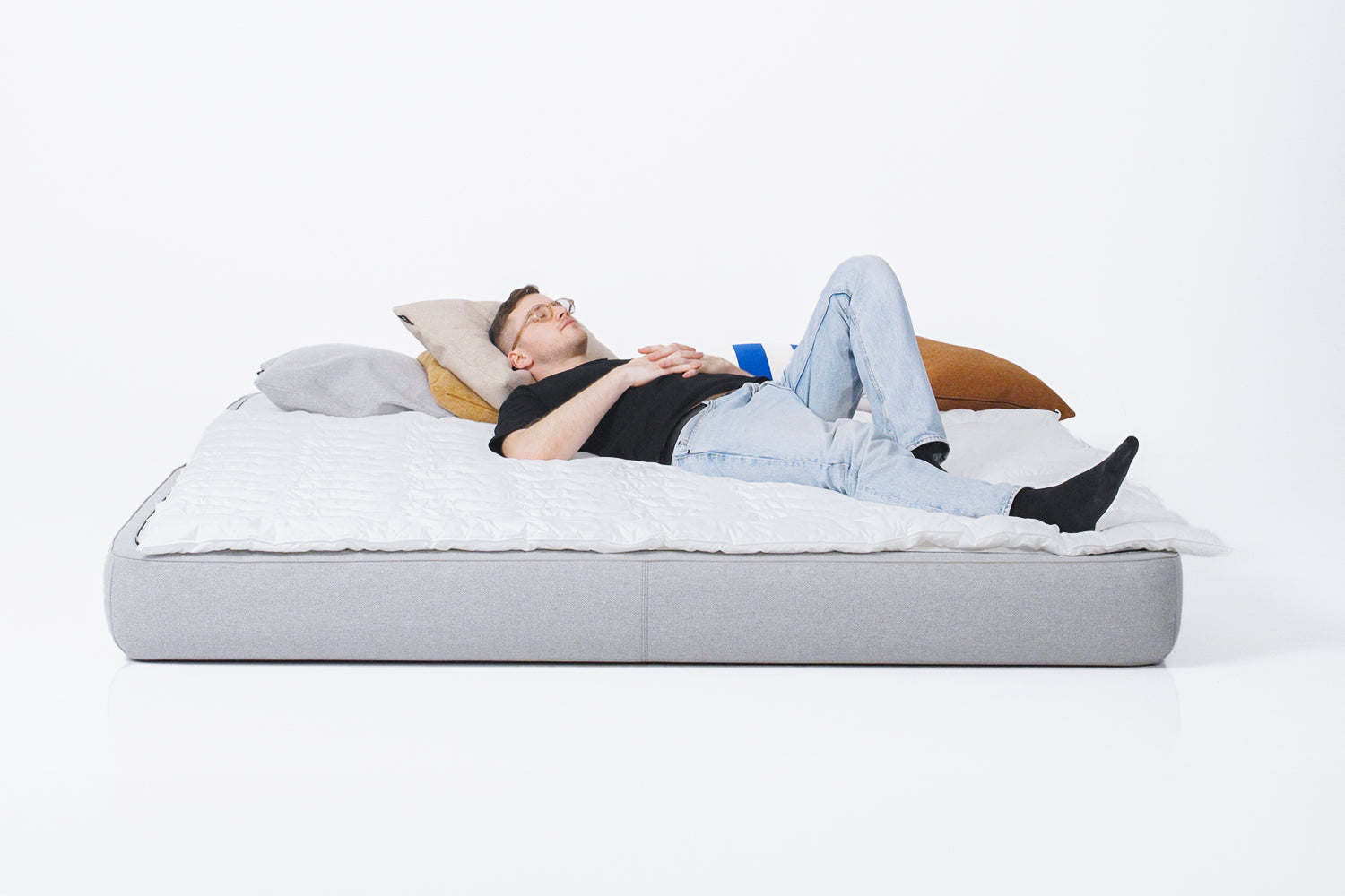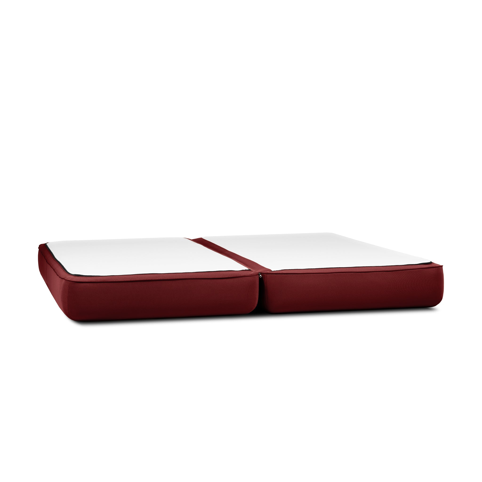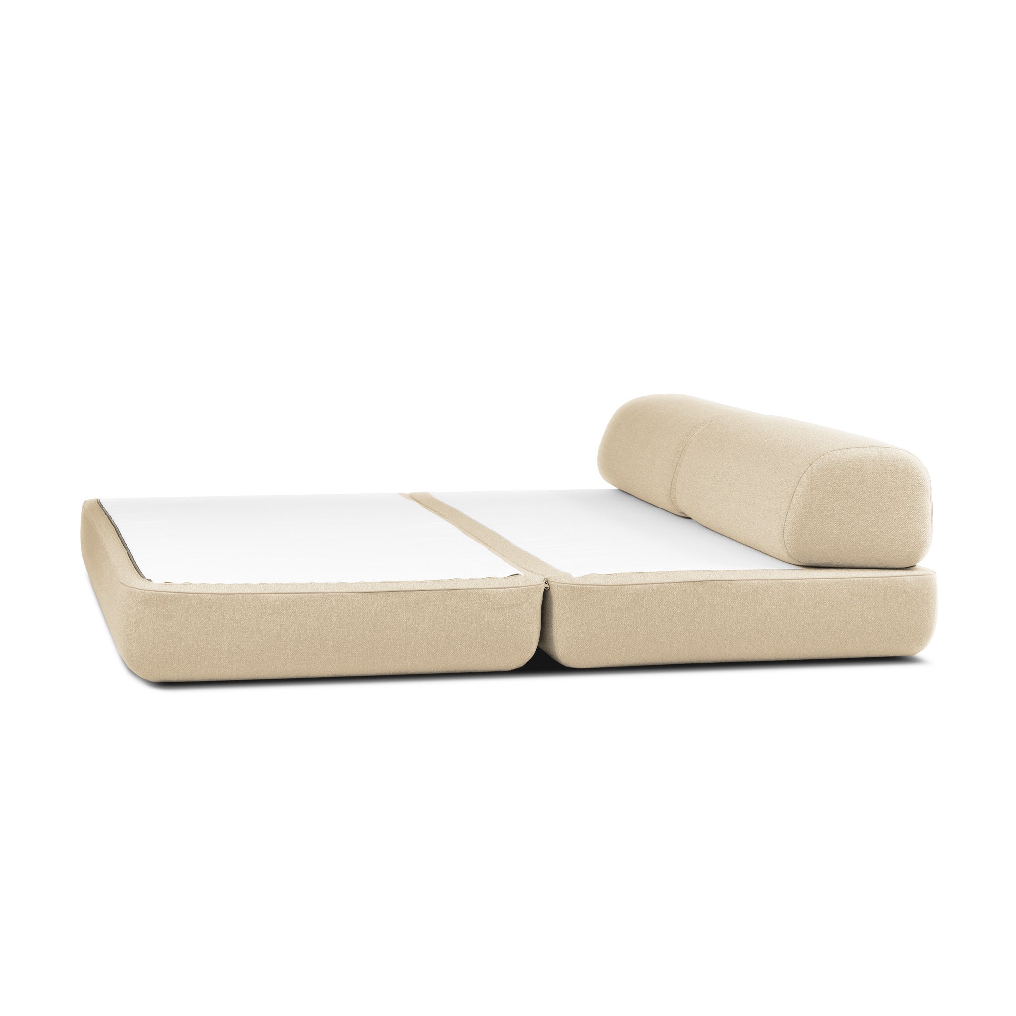 Als Bett ist das Friends & Furniture Schlafsofa mit einer zweischichtigen Matratze ausgestattet, die sich aus einer 15 cm dicken, als „fest“ eingestuften Grundschicht und einer 4 cm dicken Schicht aus Memoryfoam zusammensetzt. Auf diese Weise passt sich die Matratze der Körperform an und sorgt für ein komfortables Schlaferlebnis.