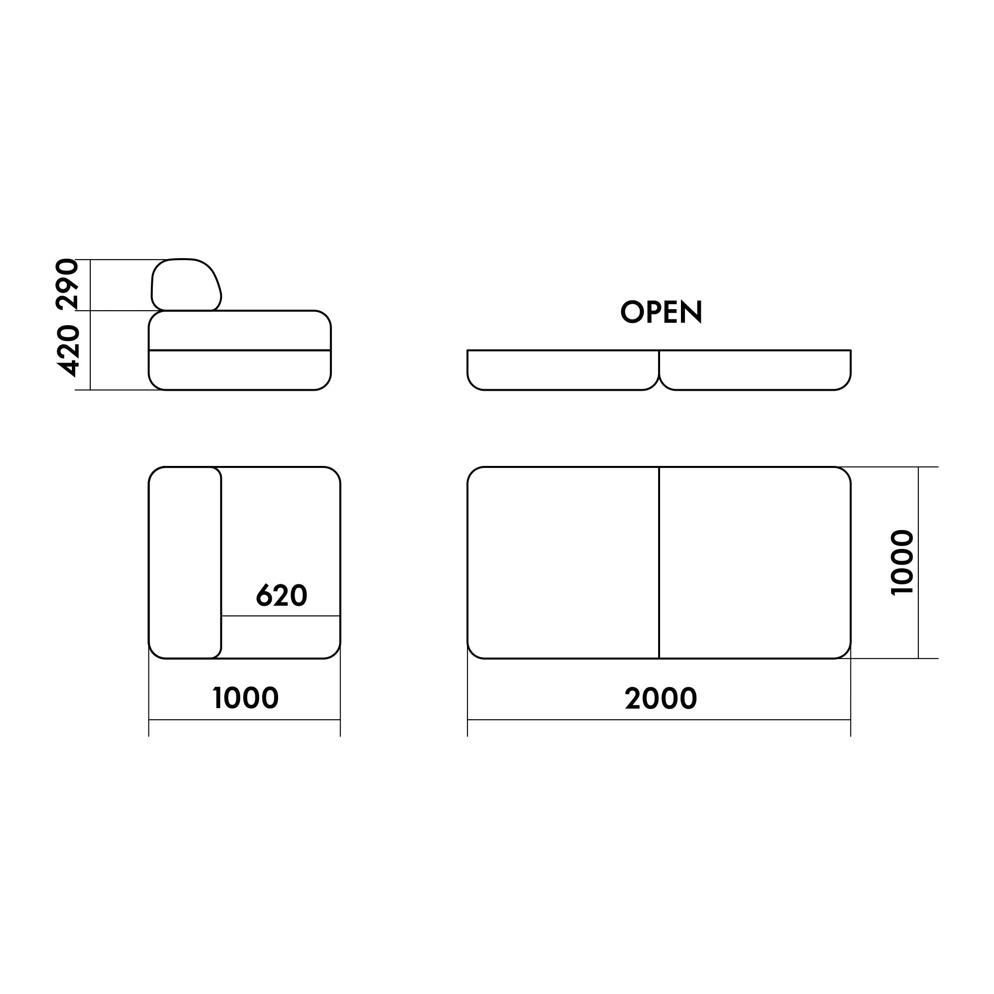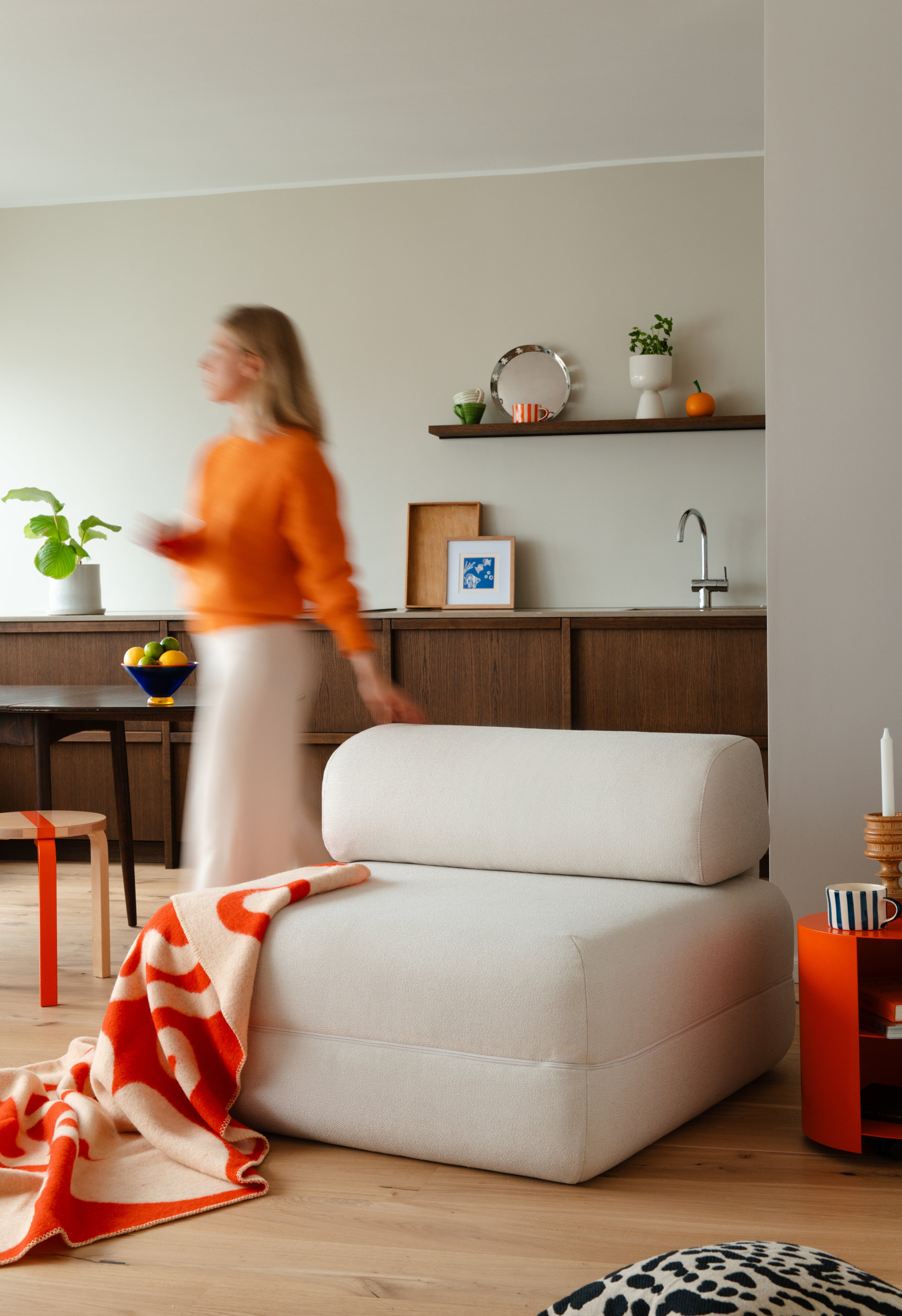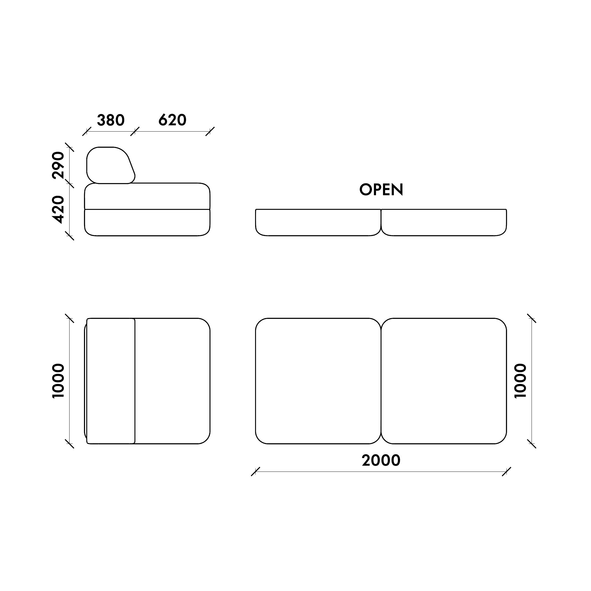 Der Friends & Furniture Single Schlafsessel eignet sich hervorragend als Ergänzung zum großen Friends & Furniture Sofa oder als Sessel. Im Bettmodus misst er 100x200 cm, als Sessel 100x100 cm. Die Sitzhöhe beträgt 42 cm. Die 100 % recycelten Friends & Furniture ECO-Stoffe sind bei 30 °C maschinenwaschbar.